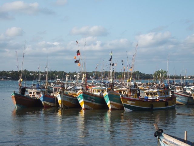 The sea was quite rough and the waves were crashing on the shore but the beach is quite lovely with palm trees and coconuts and little shack cafes dotted along the beach. There were pretty fishing boats in the harbour but as it is a working harbour it was a bit industrialised and smelly in parts! We decided to take a three wheeler back to a nearby watering hole where we had a Lion beer while looking out to sea!